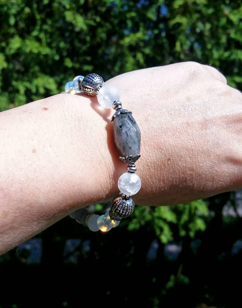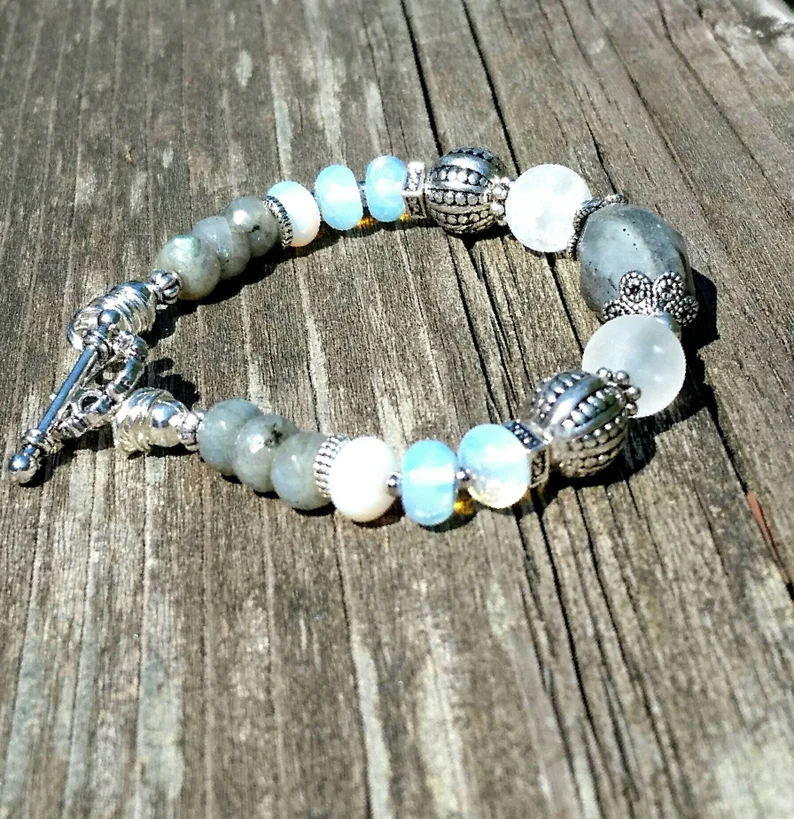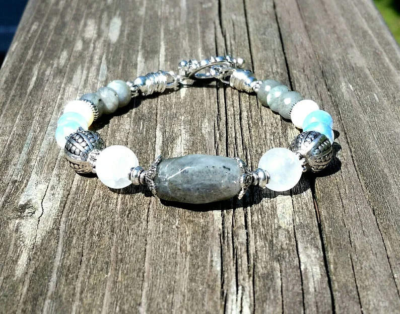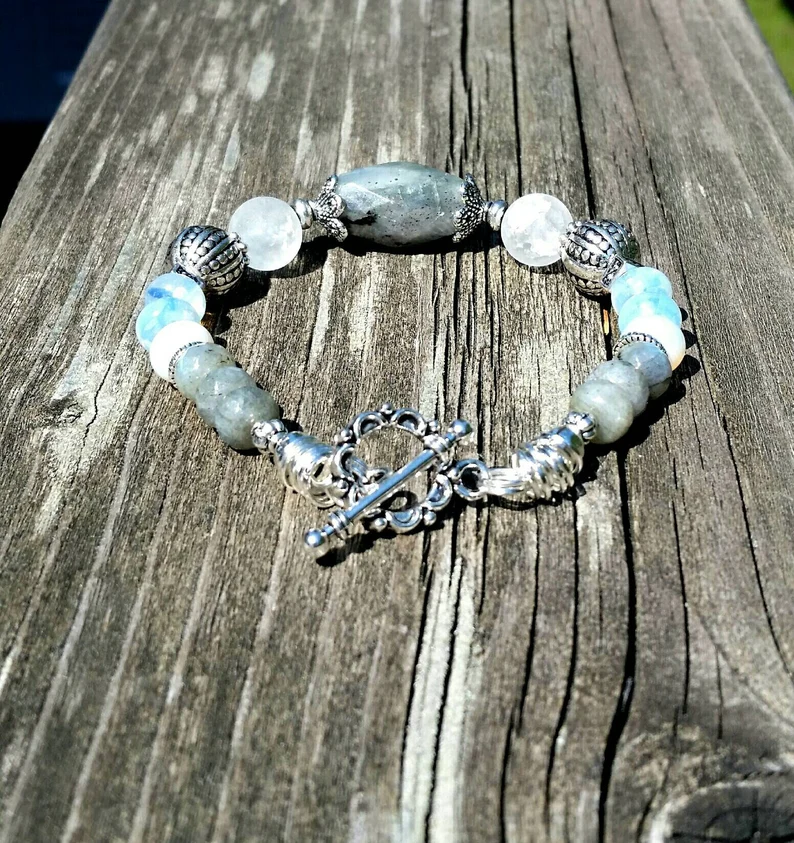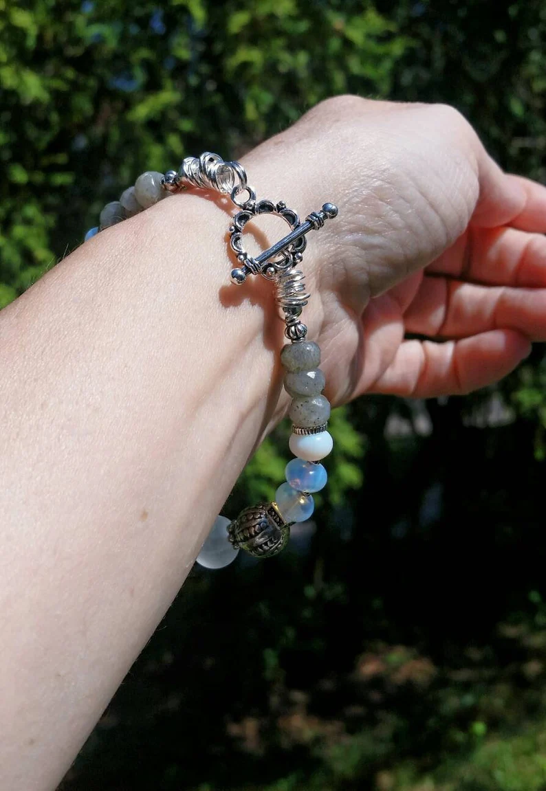 Blue Labradorite Bracelet made with Genuine Labradorite and opals