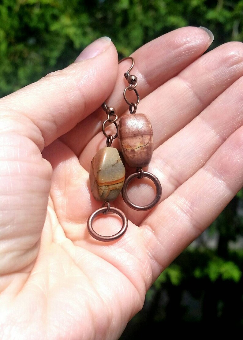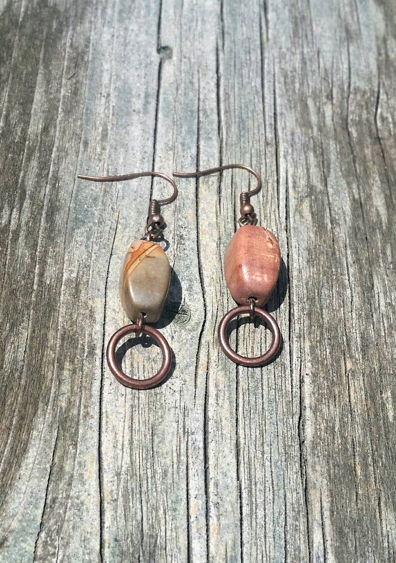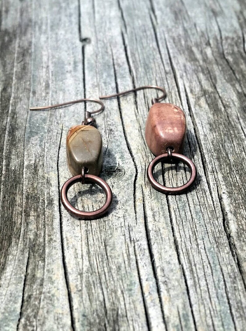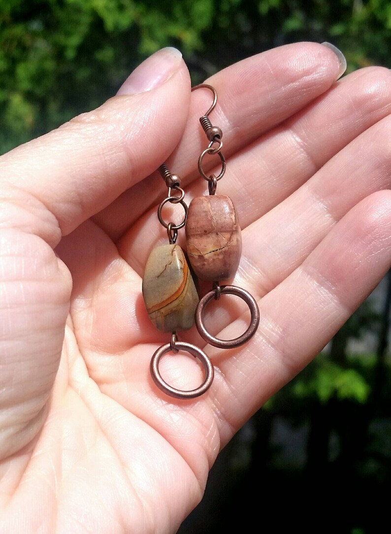 If you are like me, you love all things earthy when it comes to fashion. The natural elements of the copper and Picasso Jasper beads in these earth tone earrings make these such pretty earrings! I also love the hippie style and boho jewelry look. The colours will go with any warm tones.