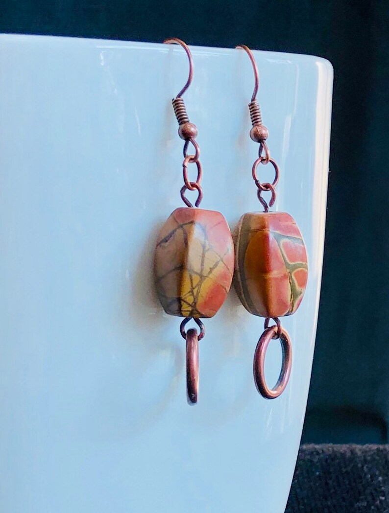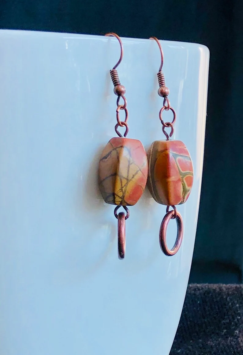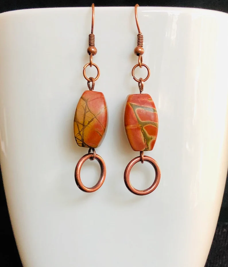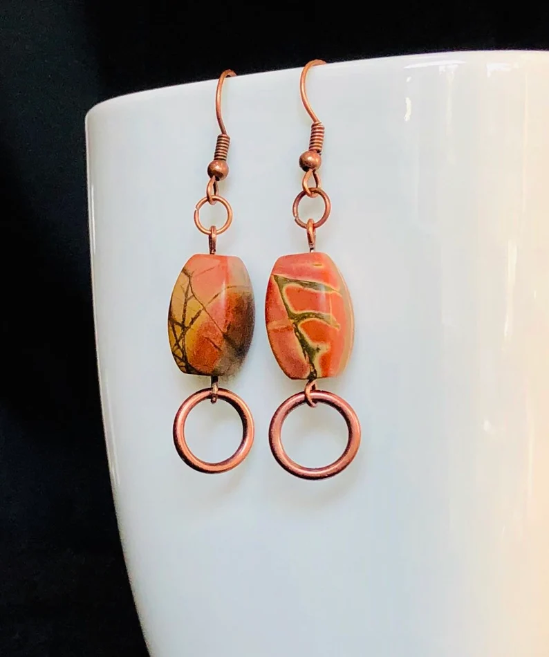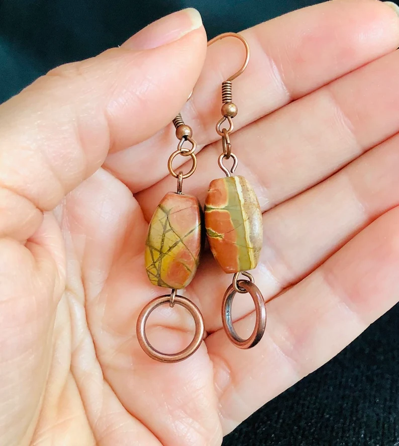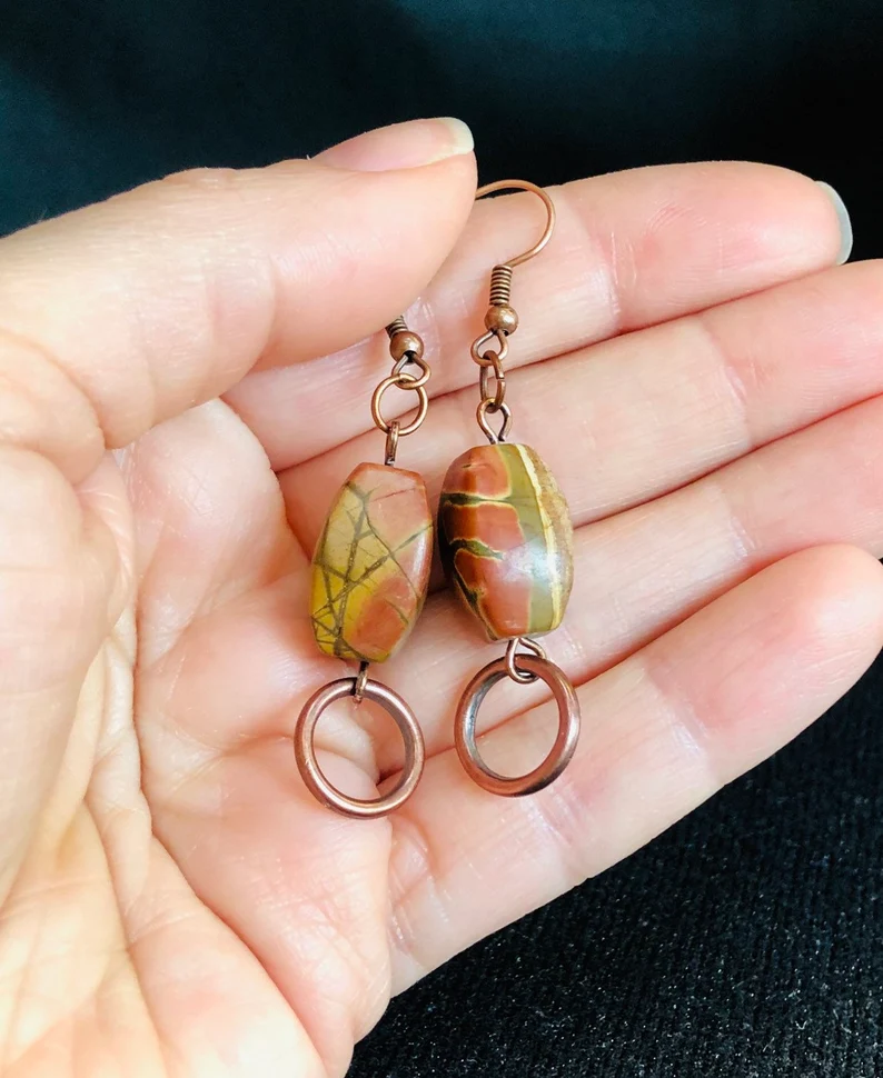 If you are like me, you love all things earthy when it comes to fashion. The natural elements of the copper and Picasso Jasper beads in these earth tone earrings make these such pretty earrings! I also love the hippie style and boho jewelry look. The colours will go with any warm tones.