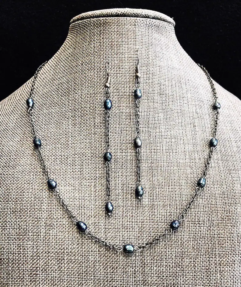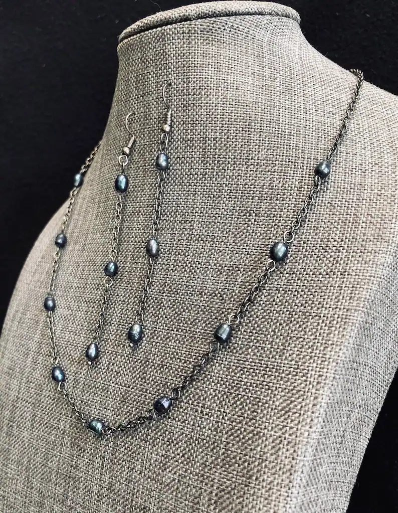 5 reviews for Dark Pearl Necklace and Earrings