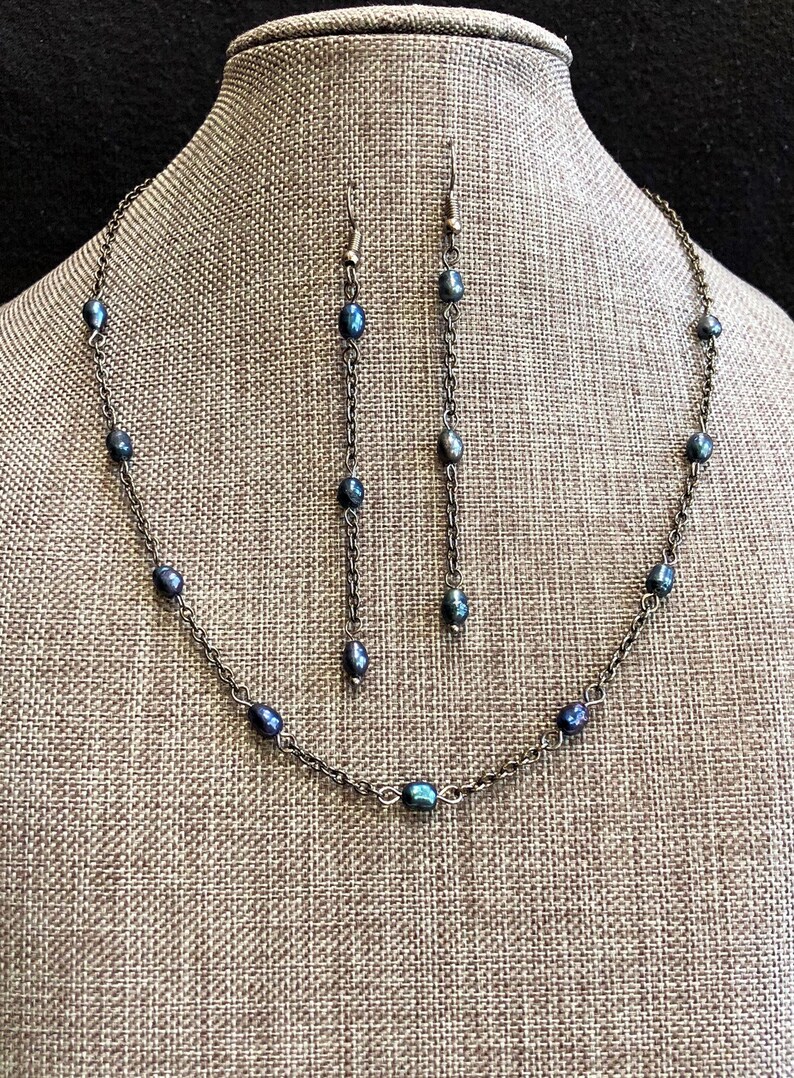 + $24.30 for shippingDark Purple Freshwater Pearl and Black Chain 18 inch Choker Necklace and Earrings