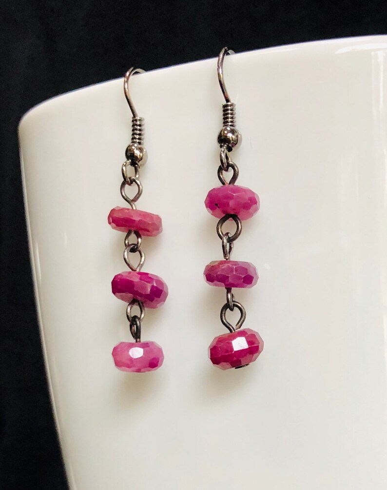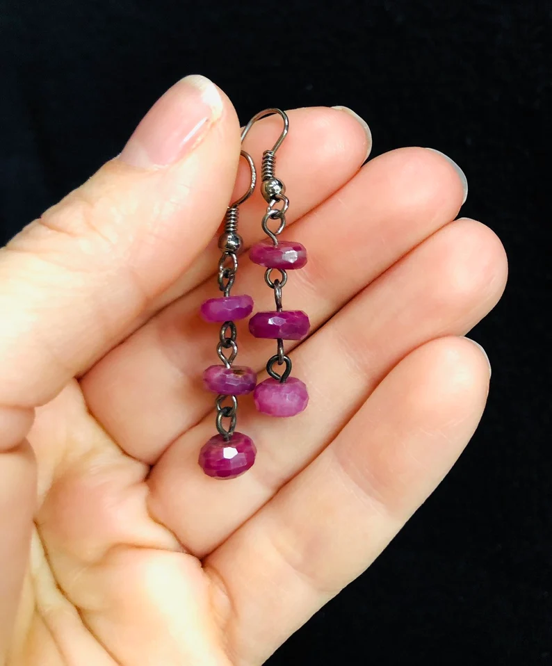 Genuine Faceted Ruby Dangle Earrings