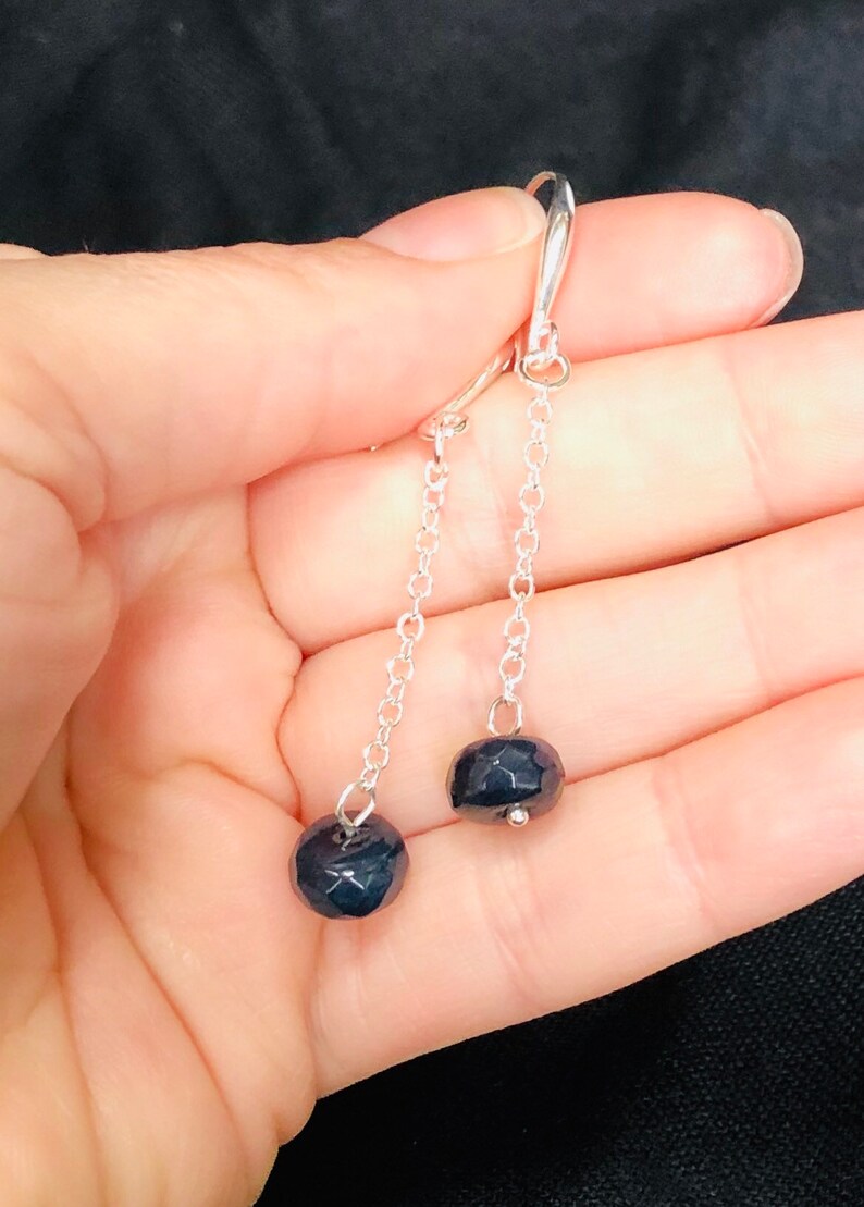 Pair these genuine sapphire earrings with one of my sapphire necklaces for a perfect jewelry set. Each pair of earrings and necklace are made so that they can be interchangeable.