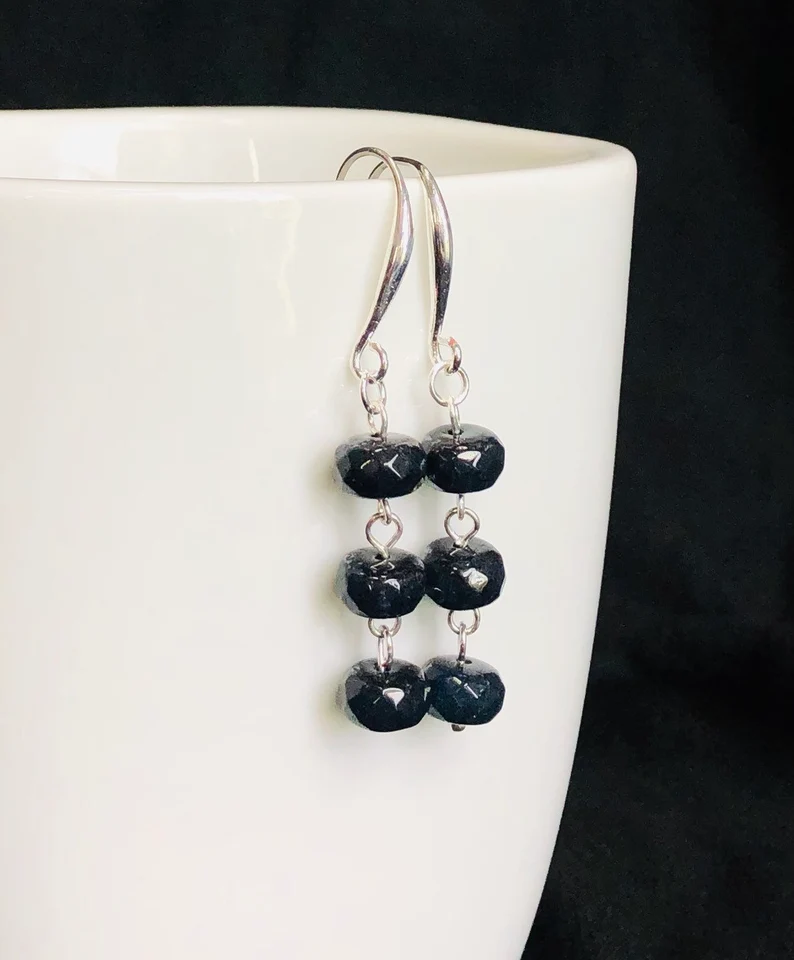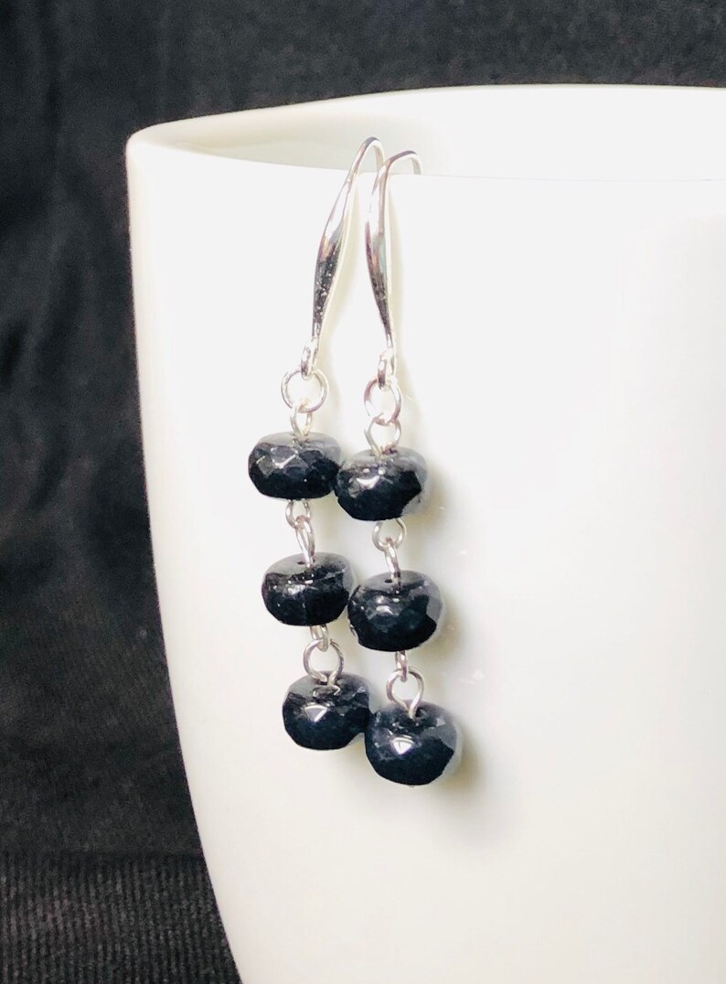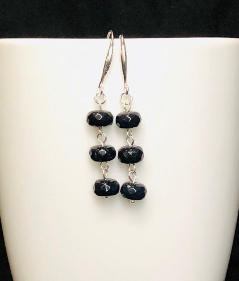 For these earrings, I have layered beautifully faceted blue sapphire beads. The pretty beads reflect light and hang lightly in the ear.