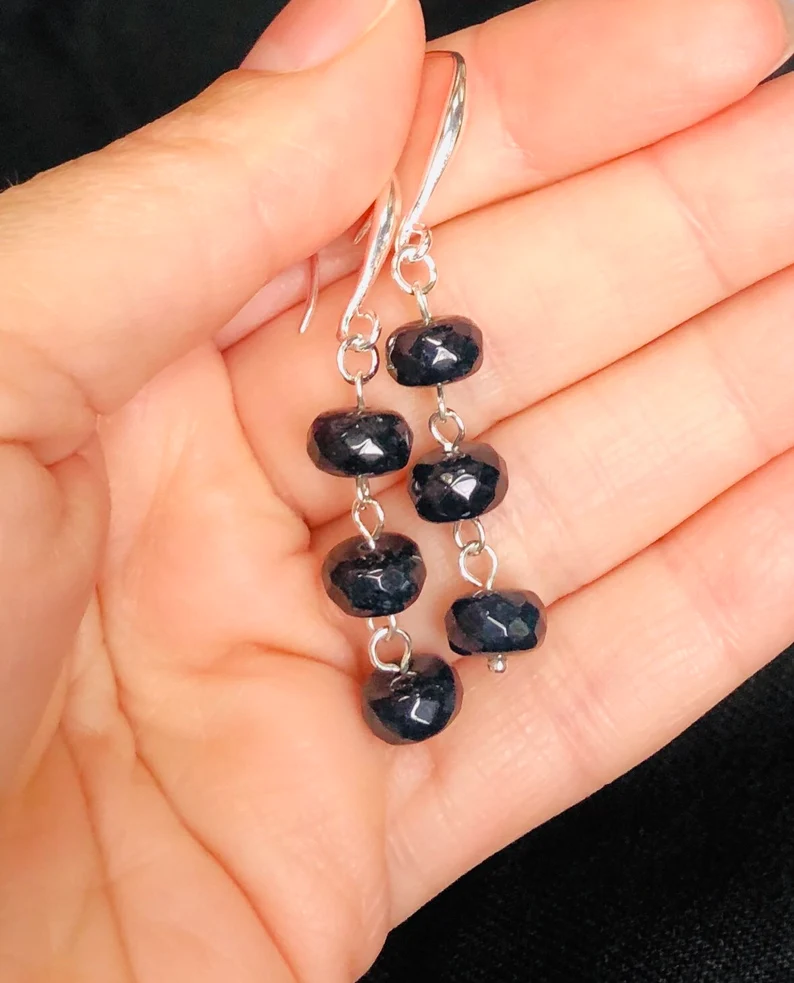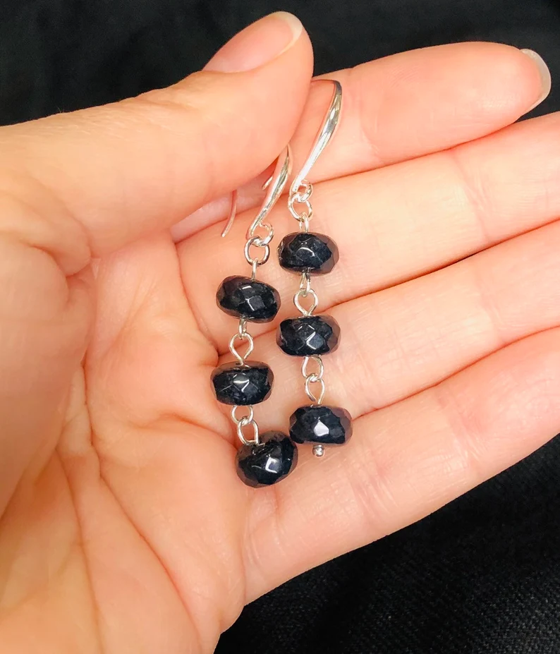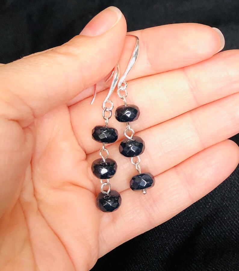 If you have a birthday in September and you have a sapphire birthstone, these different earrings are lovely. The deep blue sapphire beads are AAA grade, the highest quality.